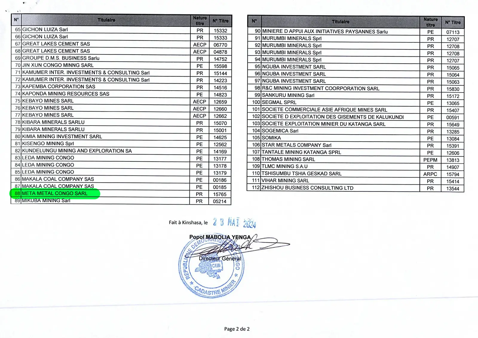 コンゴ政府の公式文書で判明|META METAL CONGOの年会費滞納の事実