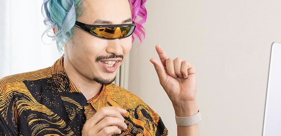 サングラス姿でラップをするクリエイターチーム「マツダ家の日常」のリーダーです。